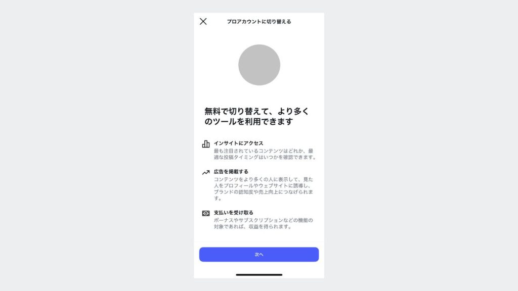 6.クリエイターorビジネスタイプを選び、「次へ」をタップ
