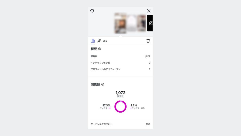 - どこから閲覧されたかの割合(プロフィール/フィード/検索/ストーリーズ/発見タブ)