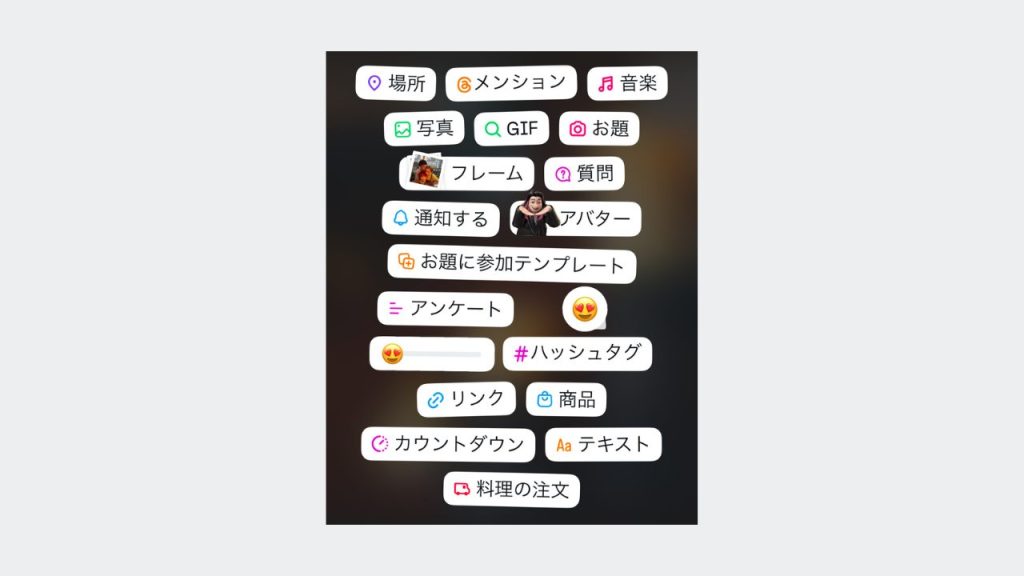 ストーリーズには、アンケート、質問スタンプ、リアクションスタンプなど、ユーザーとのインタラクションを促すさまざまな機能が搭載されています。
