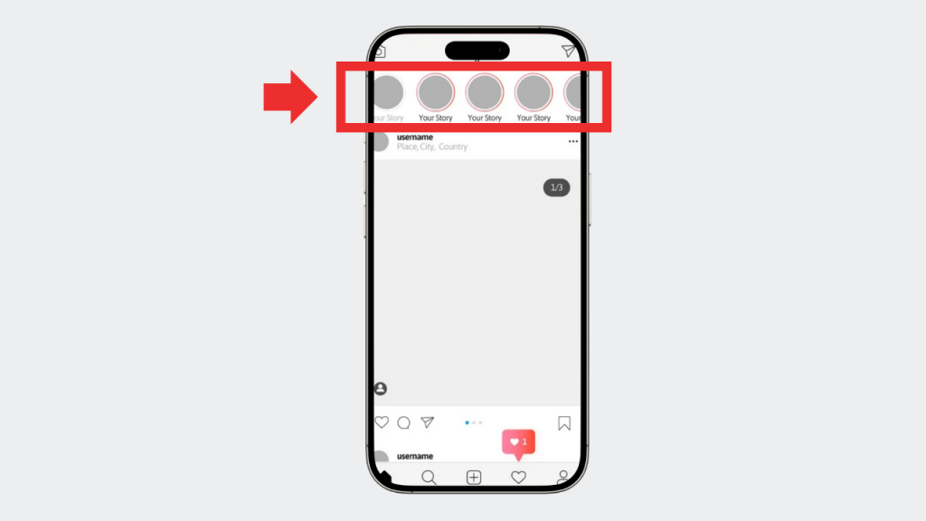 ホーム画面の上部に表示される、丸いアイコンがストーリーズです。