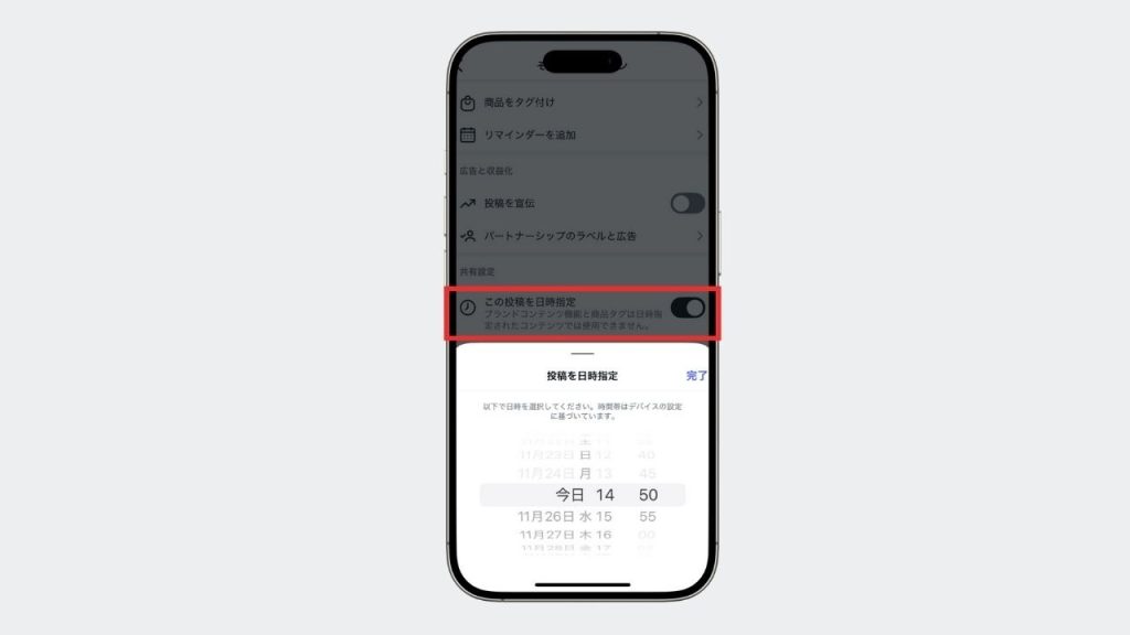 写真、キャプション、タグ付け、位置情報、共同投稿者の追加などは予約後の修正が可能です。