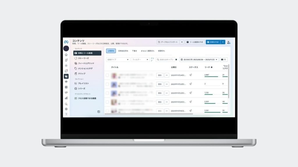 PCから予約投稿を行う場合は、Meta Business Suite(旧クリエイタースタジオ)が便利です。