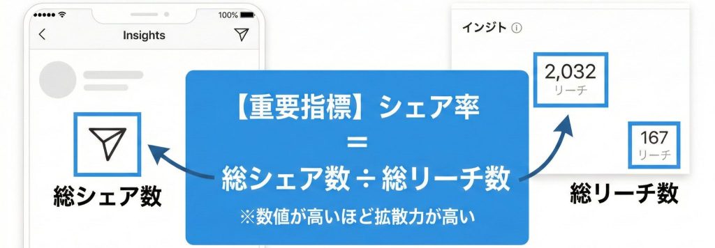 この流れの中で、運用担当者が絶対に見るべき指標が「シェア数」と「シェア率」です。